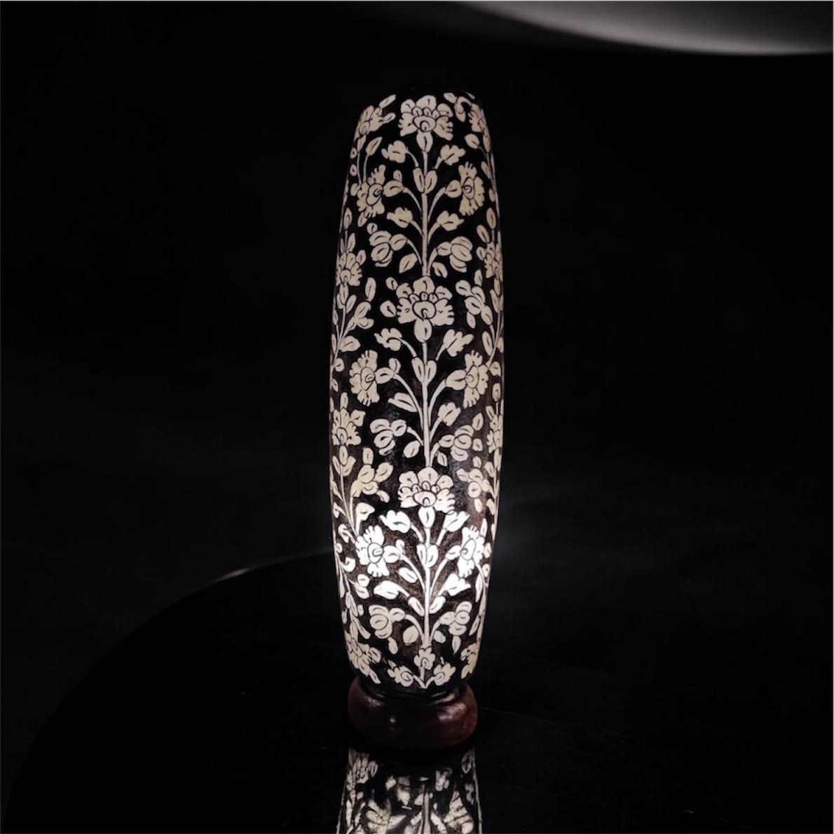 Glow your space and add an elegant touch with our Black Floral Camel Skin Bottle Lamp. Featuring intricate calligraphy designs, this lamp is perfect for creating a warm and inviting atmosphere. Let the soft glow and cultural influence of this lamp enhance your home decor.